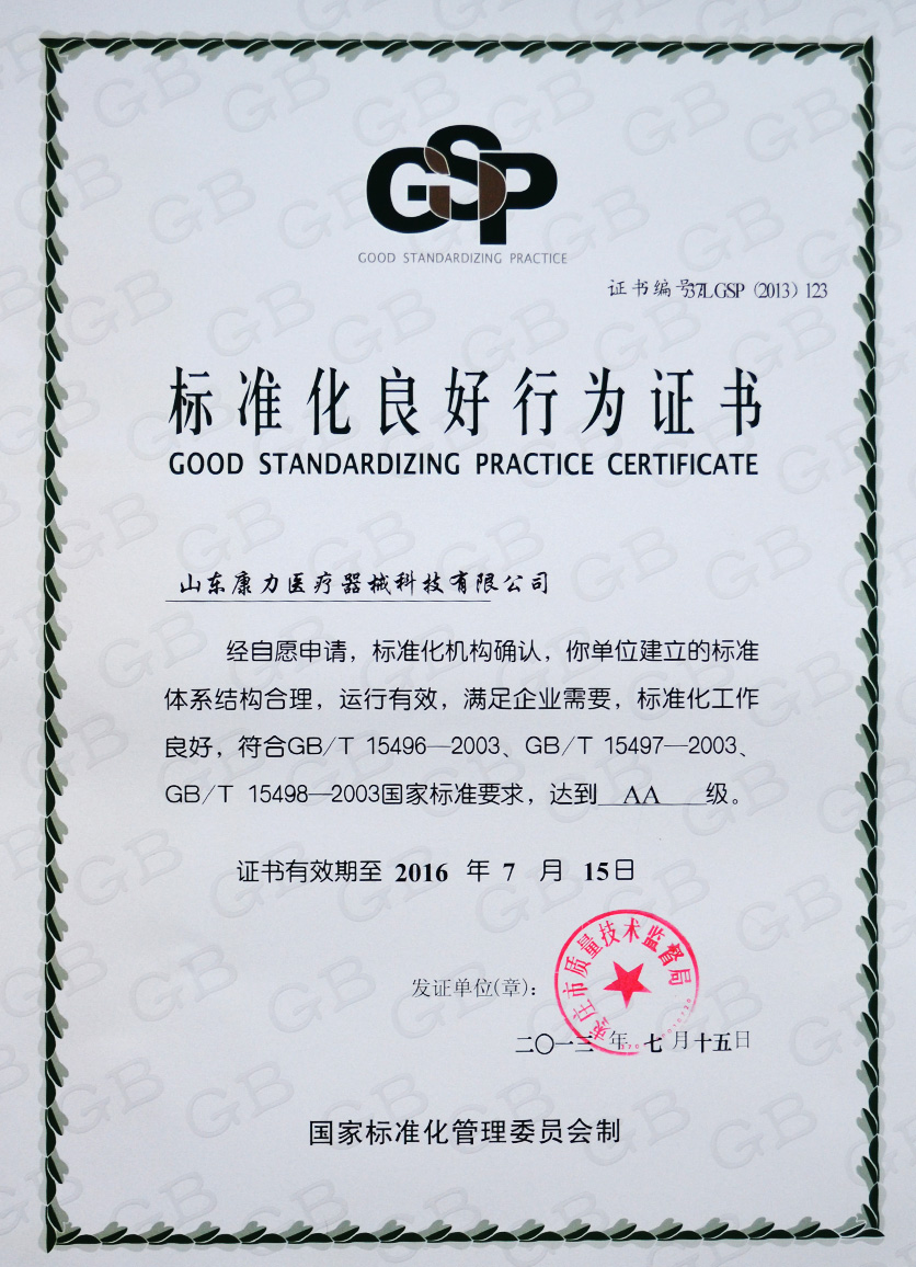 標(biāo)準(zhǔn)化良好行為證書