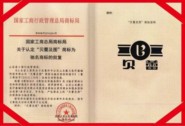 熱烈慶賀康力醫(yī)療“貝蕾”商標(biāo)被認(rèn)定為中國(guó)馳名商標(biāo)