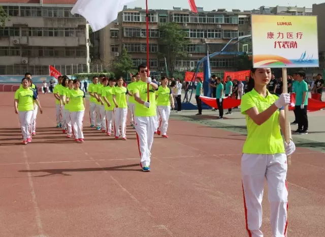 在雄壯的運(yùn)動(dòng)員進(jìn)行曲中,康力醫(yī)療代表隊(duì)著裝整齊、精神抖擻地列隊(duì)走過大會(huì)主席臺(tái)。