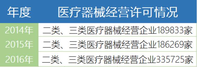 與2015年相比,2016年度,全國竟然多出了近15萬家二、三類醫(yī)療器械經(jīng)營企業(yè)!