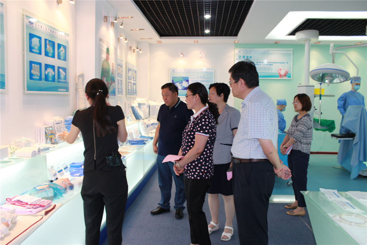總經(jīng)理向邵局長(zhǎng)一行介紹公司高新技術(shù)產(chǎn)品:一次性使用精密過濾輸液器