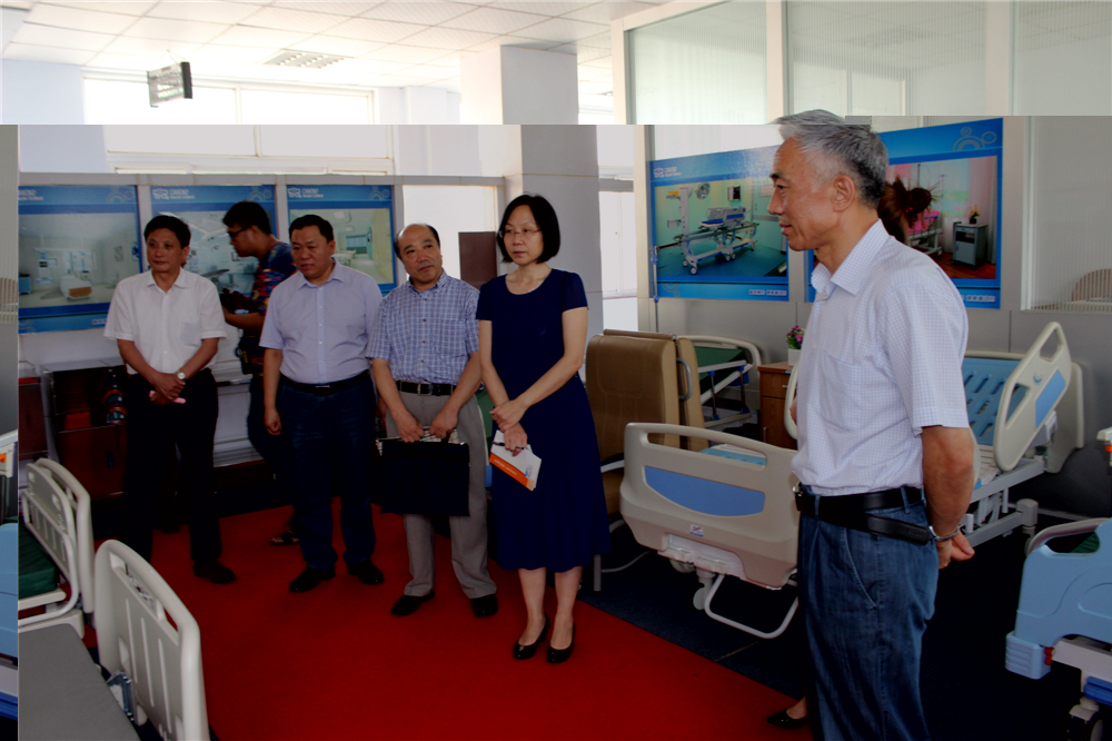 廖發(fā)銀副局長一行領導在呂作文總經理的引導下實地參觀了康力醫(yī)療產品展示廳、標準化醫(yī)用敷料生產車間、滅菌車間、醫(yī)用護理床加工車間、產品預熱房和解析房,深入一線詳細了解了康力產品生產加工的整體流程。廖發(fā)銀副局長對康力醫(yī)療重視產品質量,為提高產品品質而高標準修建產品預熱房、解析房的做法給予高度評價。