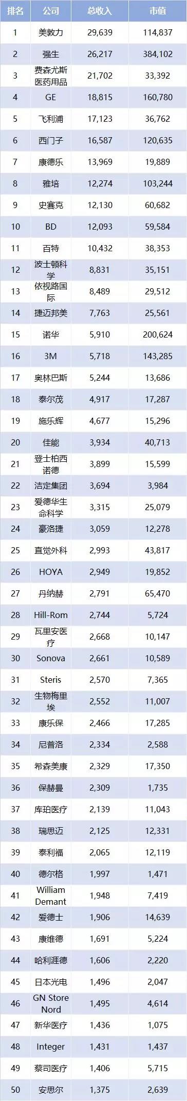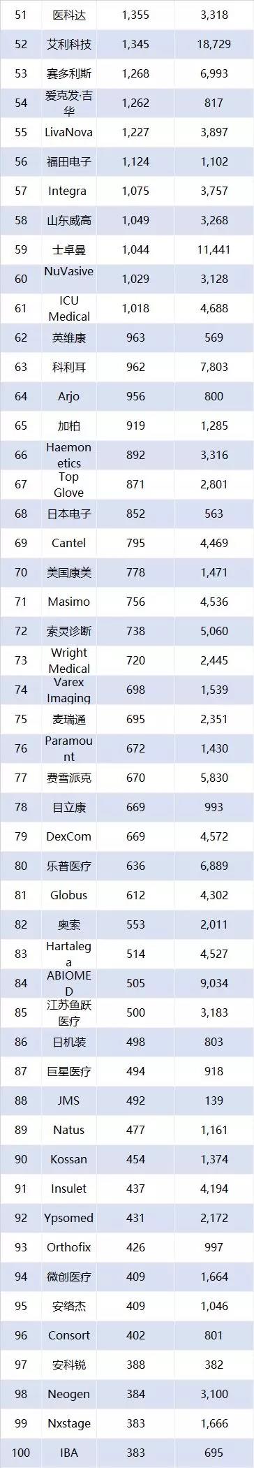 2018年度全球醫(yī)療器械公司100強,6家中國公司