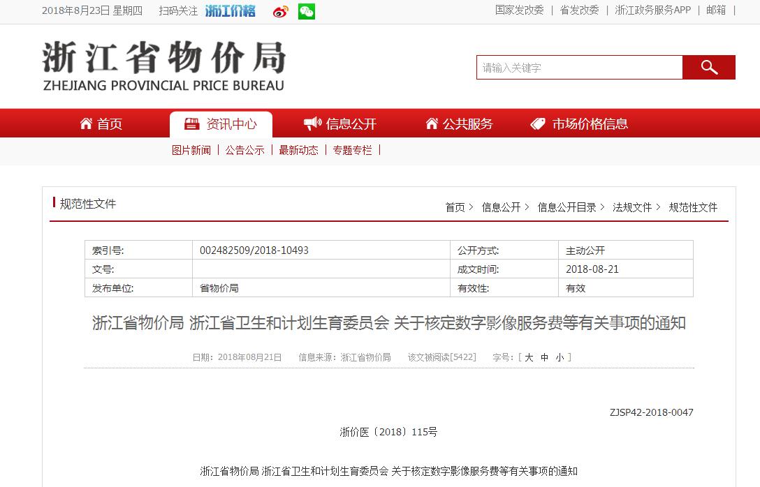近日,浙江省物價局聯(lián)合浙江省衛(wèi)計委員會印發(fā)了《關(guān)于核定數(shù)字影像服務(wù)費(fèi)等有關(guān)事項的通知》(以下簡稱通知),其中,對數(shù)字影像的服務(wù)費(fèi)用公立醫(yī)院收費(fèi)不能超過20元尤為引人注意。
