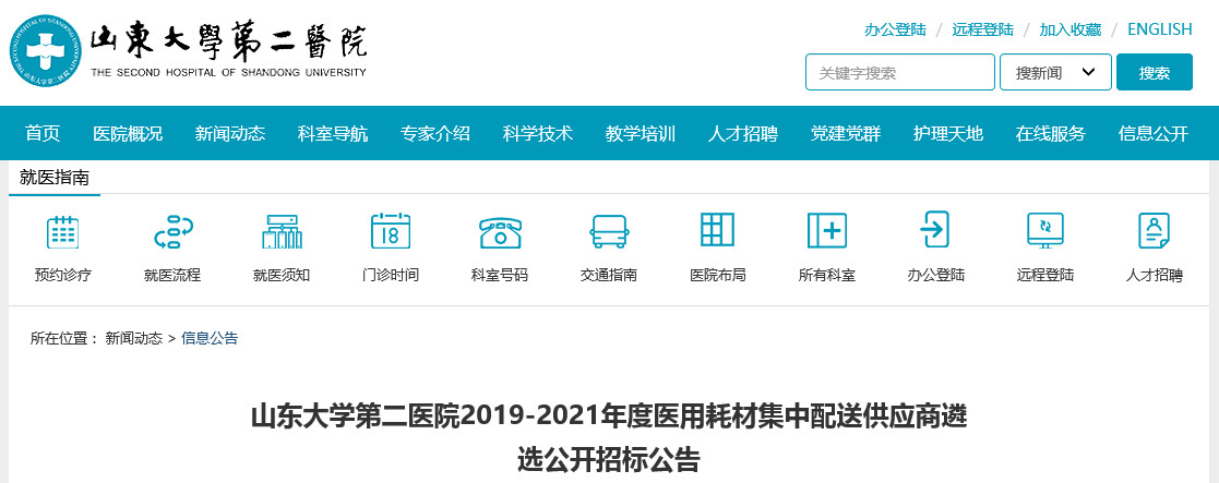 12月4日,山東大學第二醫(yī)院發(fā)布《2019-2021年度醫(yī)用耗材集中配送供應商遴選公開招標公告》(以下簡稱《公告》)。