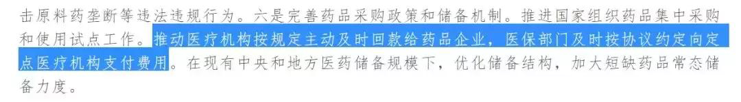 4月16日,國務(wù)院《關(guān)于短缺藥品供應(yīng)保障相關(guān)工作情況介紹》宣布醫(yī)院回款要及時(shí)、主動(dòng)。