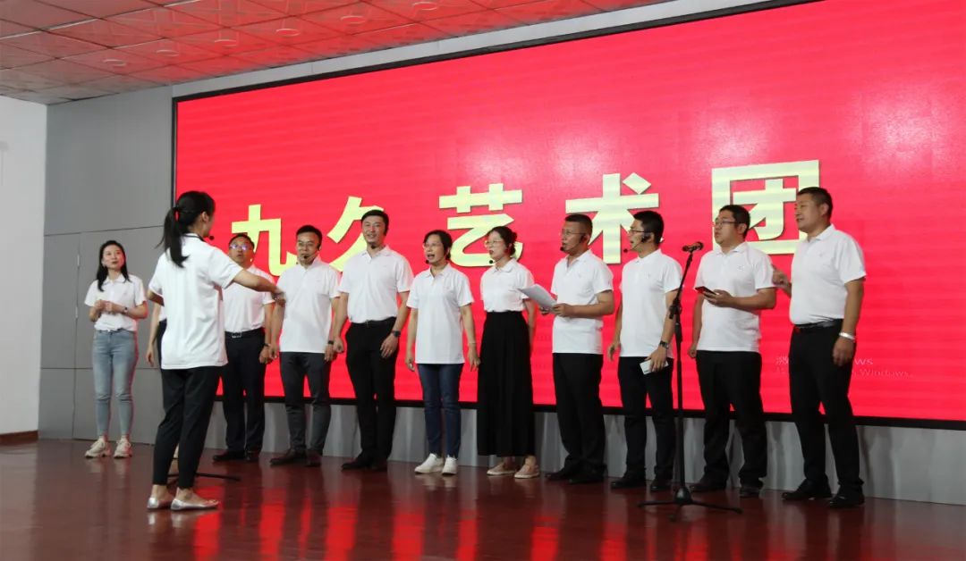 “九久藝術團”采用新穎的舞臺劇形式,給大家?guī)砹恕段液臀业淖鎳?、毛主席詞《詠梅》改編歌朗誦、《青春奮斗曲》大合唱等多個節(jié)目。獨唱、對唱、朗誦、合唱……一個個節(jié)目精彩紛呈,現場贏得大家一陣陣的笑聲、掌聲、喝彩聲。