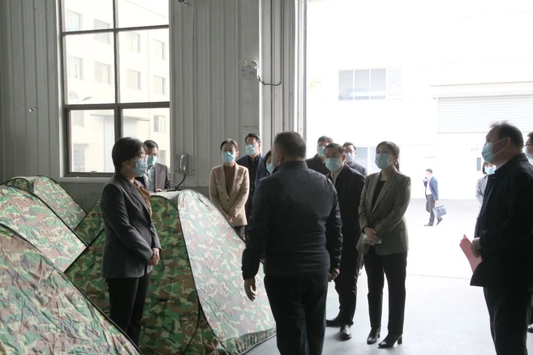 李妍一行深入公司生產(chǎn)一線,實(shí)地察看防疫物資生產(chǎn)凈化車間、醫(yī)用防護(hù)服、防護(hù)口罩等產(chǎn)品的生產(chǎn)情況,隨后來(lái)到員工休息區(qū),查看員工休息帳篷、被褥、洗漱用品等閉環(huán)生產(chǎn)生活物資的準(zhǔn)備情況,并聽(tīng)取相關(guān)情況匯報(bào)。